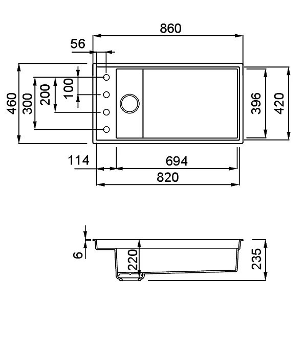 Hloubka vaničky: 220 mm