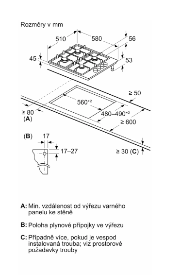 Požadovaná velikost otvoru pro instalaci (v x š x h)