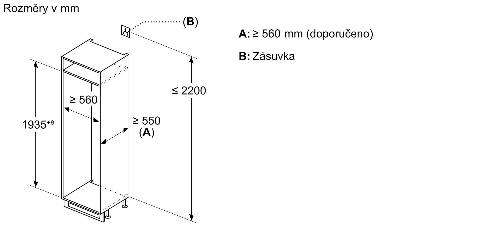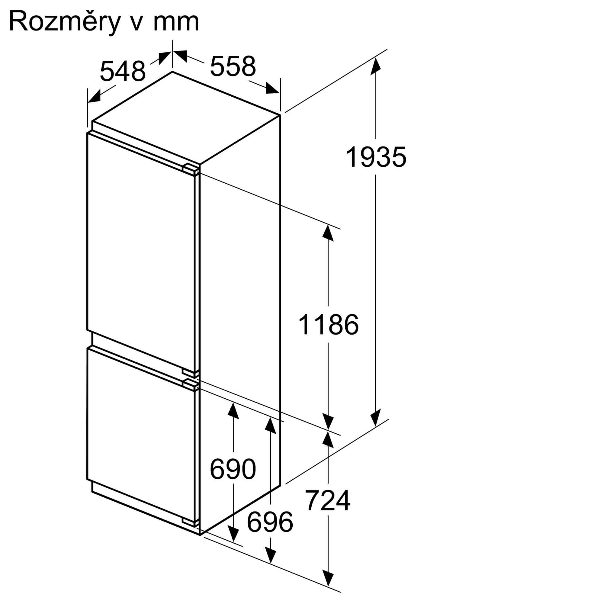 rozměry spotřebiče (V x Š x H) : 193.5 cm x 55.8 cm x 54.8 cm