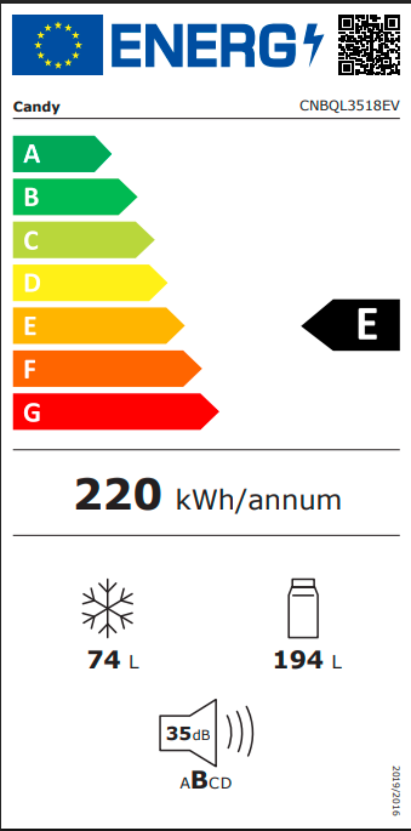 Dle stupnice nového energetického štítku spadá tato chladnička do energetické třídy E. Šetří nejen energii a peníze, ale i životní prostředí.