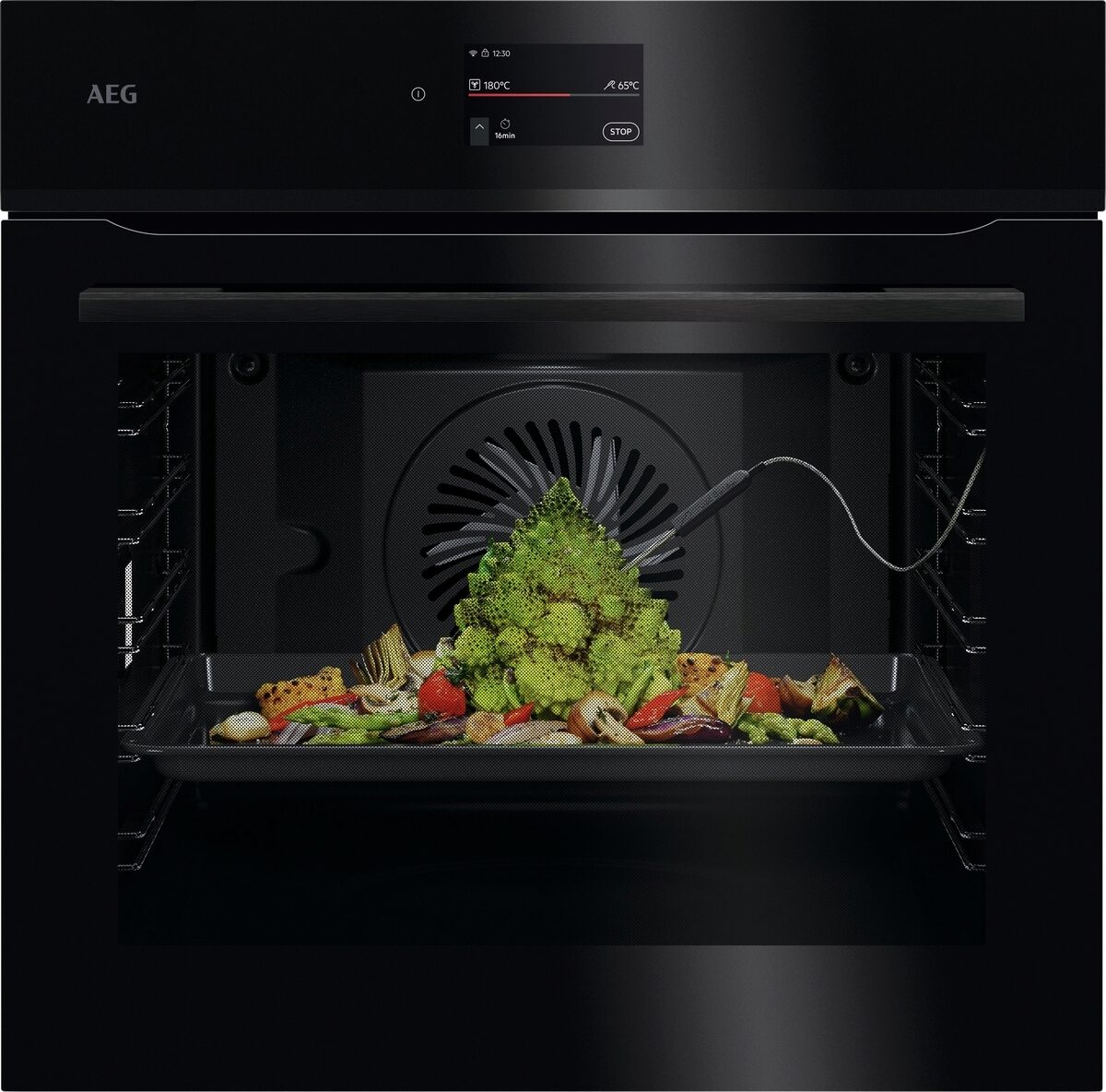 Elektronické funkce: 16 Multi Step Cooking Functions, 20 Favorites, Oven light on/off selectable (2 ways: menu, direct access on home screen), Preheating (none, eco, fast), ukazatel teploty (°C), ukazatel zbytkového tepla, Residual heat usage (only with duration), info k servisu, denní čas, Short cut keys in standby screen, doporučená teplota, demo program s kódem, nastavení jasu disp., Display Full colour TFT touch 4.3 inches 9 x 5, elektronická regulace teploty, elektronický zámek dveří, Electronical door switch, výběr rychlého předehřátí, jídelní sonda, automatické vypnutí jídelní sondy, jídelní sonda - indikace teploty jádra, jídelní sonda s odhadem času, tóny kláves, alarmů a chyb, aktivace/deaktivace (kromě hlavního vypínače), hlavní vypínač, denní paměť 3 dny zpětně, minutka, OTA programming (excluding power board), 31 Languages/Text display, 85 Variety of pre-set cooking programmes Assist, akustický signál, ovládání aplikací, automatické vypnutí (jen trouby), nastavení hlasitosti minutky, Check Result (Finish Assist by remaining 10% duration) (Use residual heat screen + beep), Dětský zámek, minutka pro čištění, Cleaning: Pyro (3 level: light, normal, intense), Clock automatic adjustment, Clock style in standby (2 versions: digital, 7 segments), konektivita, čas vaření, čas vaření s odhadem konce, přičítání času